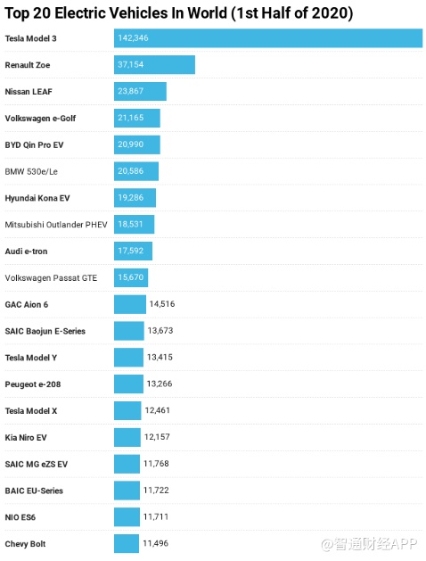 到目前为止,特斯拉已经设法在对电动汽车市场(尤其是高端市场)的竞争降至最低的情况下实现了自身规模的增长。下图为2019年以来的最畅销的电动车排名。