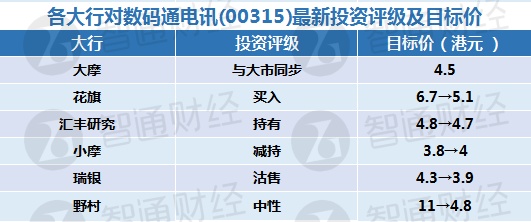 三、各大行对数码通电讯(00315)最新投资评级及目标价