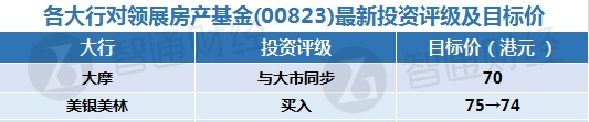 四、各大行对领展房产基金(00823)最新投资评级及目标价