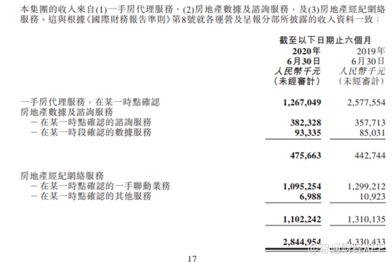 一手房代理服务分部,主要包括就新住宅物业单位提供予房地产开发商的市场营销及销售服务;房地产信息及咨询服务分部,主要包括向房地产开发商及参与物业市场的其他各方提供有关法律、法规、政策、市场资料及相关技术的信息及建议;房地产经纪网络服务分部,主要包括向个人客户及二手房交易有关的经纪公司提供交易及相关增值服务。
