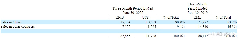来自中国的销售额为7533.4万元,占总销售额的90.9%;海外销售额为752.2万元,占总销售额的9.1%。