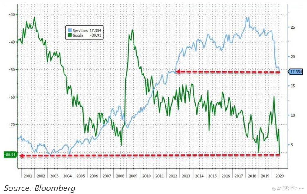商品贸易跌至至少20年来的最低水平,服务贸易则跌至2012年8月以来的最低水平。