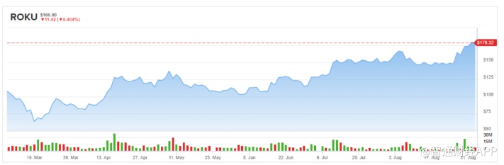 智通财经APP获悉,昨天(9月3日),受科技股下跌影响,纳斯达克指数收跌4.96%,但年初至今该指数仍上涨了近27%。其中,Roku(ROKU.US)收跌6.4%,报166.9美元。Roku的股价上周上涨了近10%,年初至今上涨了约24%。