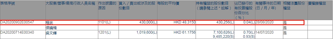 智通财经APP获悉,香港联交所最新资料显示,8月28日,首席执行官程武增持阅文集团(00772)43万股,每股作价48.3150港元,总金额约为2077.55万港元。智通财经APP获悉,增持后最新持股数目约为43.03万股,最新持股比例为0.04%。