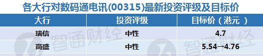 一、各大行对数码通电讯(00315)最新投资评级及目标价