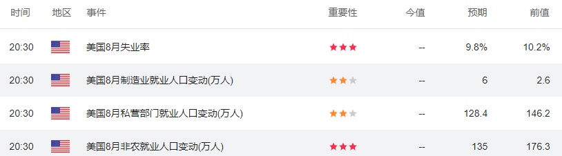 ① XM Investment Research Desk的分析师Marios Hadjikyriacos称,人们普遍认为,美国8月非农将新增140万,这将使失业率从此前的10.2%降至9.8%;