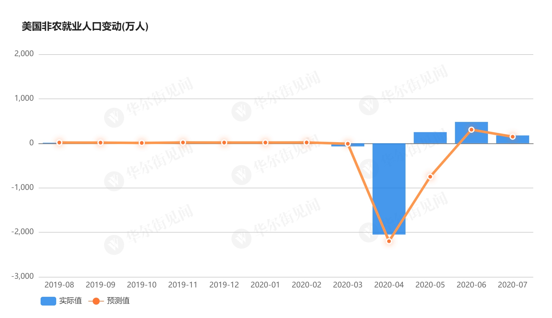 《华尔街》预计,八月美国非农就业人数将增加140万,这将是自四月份-2080万以来增速最弱的一次,这可能表明美国劳动力市场的增长正在停滞。