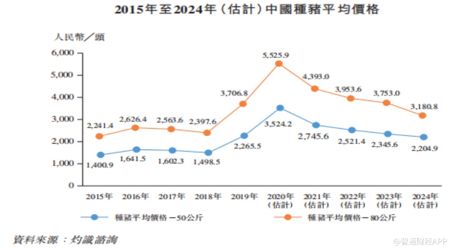 同时,50公斤种猪和80公斤种猪平均价格在2020年达到峰值之后,将呈逐年下降的趋势。