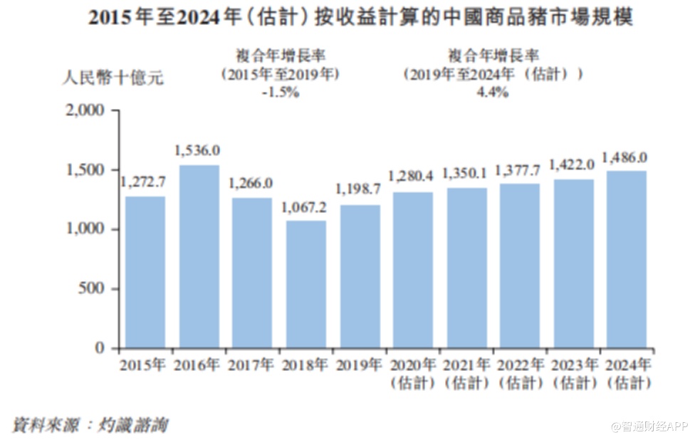根据灼识咨询报告,中国商品猪的平均价格由2016年的人民币18.4元/公斤下跌至2018年的12.6元/公斤。受非洲猪瘟肆虐及猪只养殖场的环境保护要求愈趋严谨所影响,商品猪的价格于2019年末骤升至约40元/公斤。据农业农村部监测,9月3日,全国农产品批发市场猪肉平均价格已经达到48.47元。