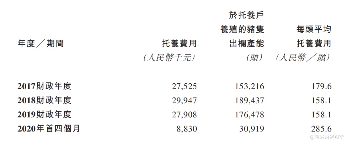 此外,公司托养费用占比为7.2%同比下降了0.4个百分点,但每头猪平均托养费用达到285.6元,远高于2017年至2019年平均托养费用不足200元水平。