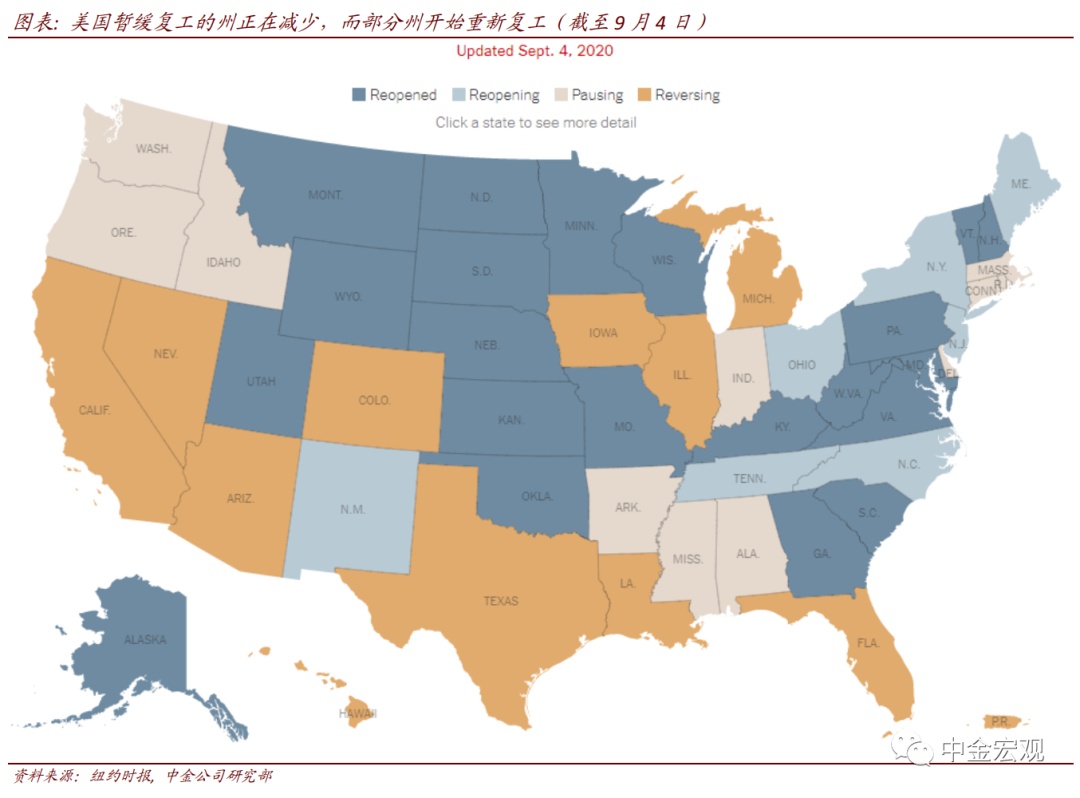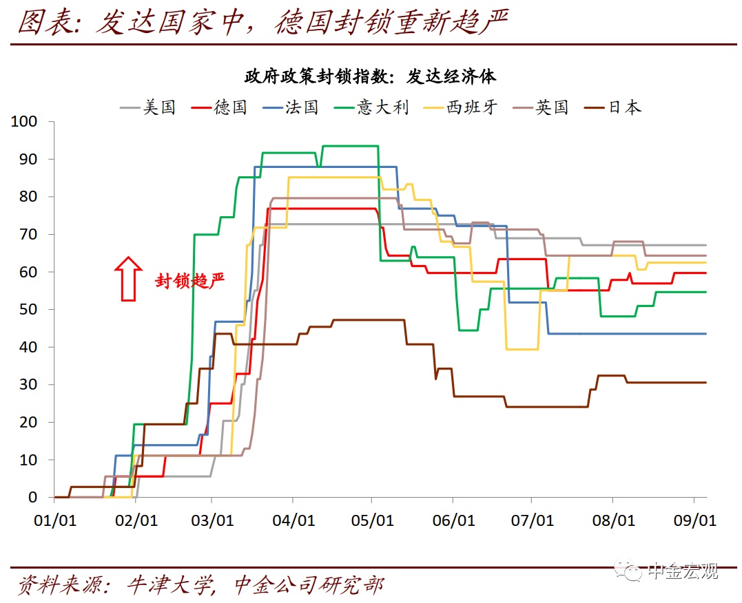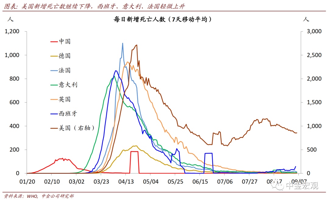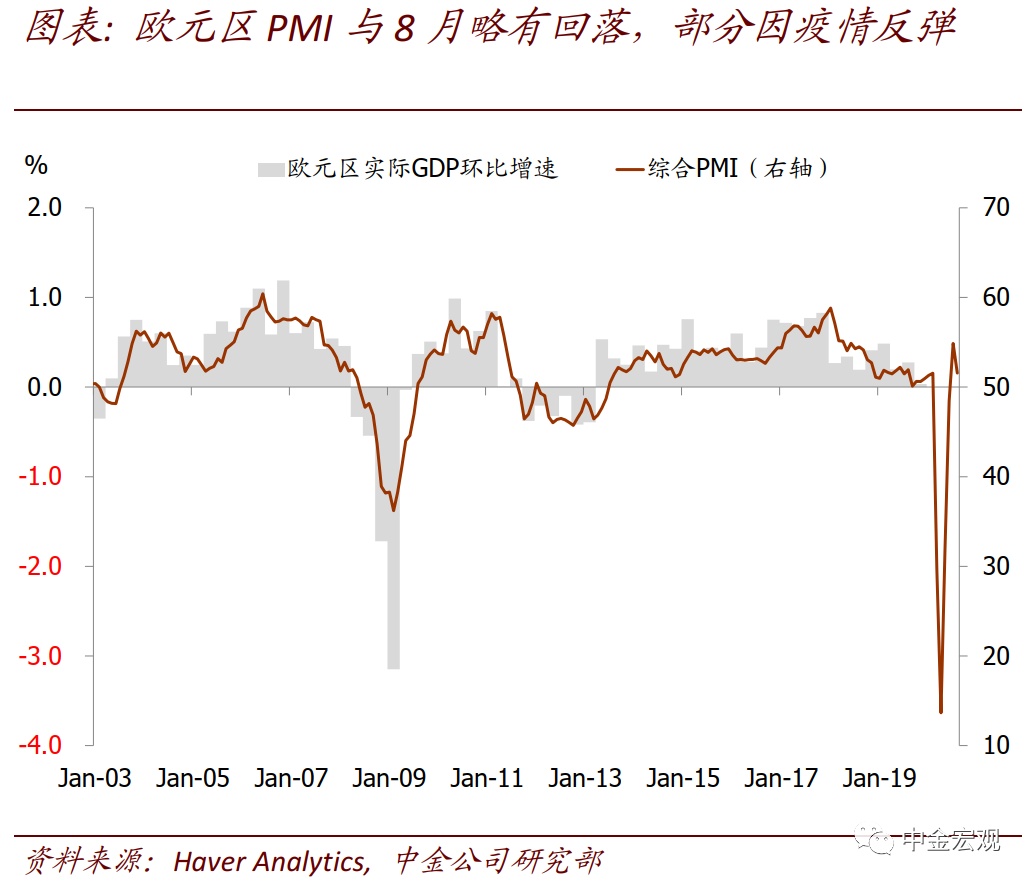 全球公共卫生事件:欧洲公共卫生事件二次”反弹继续,但经济活动受影响程度有限。根据约翰霍普金斯大学数据,截至北京时间9月6日中午12点,全球公共卫生事件累计确诊26,882,530人。上周的边际变化包括:1)欧洲国家公共卫生事件继续反弹,但与第一次公共卫生事件大不相同。法国和西班牙日新增分别超过9千和1万人,已经高于4月公共卫生事件高峰时期;意大利上周反弹力度也加大,日新增超过1700人。不过,此次公共卫生事件各国重症率和死亡率并不高,与第一次大不相同,且老年人也增强了自身防护,因而政府采取的封锁措施也相对有限;相应地,公共卫生事件反弹对居民出行的影响似乎有限。我们看到欧洲居民出行在8月短暂下滑后,近期重新回升;2)新兴市场焦点依然在印度,其公共卫生事件继续加剧,日新增继续上升至8.6万人左右;累计确诊人数达411万人,逼近巴西的412万人;3)美国压力继续缓解。其上周日新增确诊平均为4.06万人,相比前一周的4.1万人继续回落,确诊比例也在波动中回落至5.6%左右。我们继续强调,在没有疫苗或者特效药之前,全球公共卫生事件的不断反复难以避免;但对此的担忧也不宜过度。在政府及时应对、且民众具备更丰富预防公共卫生事件经验背景下,公共卫生事件大规模反弹可能性较小;从美国7月~8月经验看,即使反弹,政府也能以相对较小的经济代价再度控制公共卫生事件。