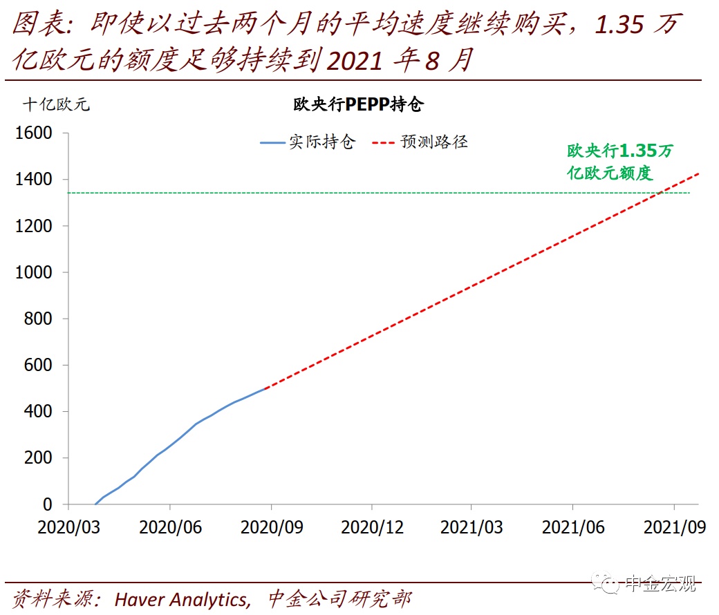 不过,我们也预计欧央行不急于在此次9月会议上就调整PEPP等政策工具。6月加码6000亿欧元后,欧央行大流行紧急购买计划(PEPP)总额度达到1.35万亿欧元。即使以过去两个月的平均速度继续购买,1.35万亿欧元的额度也足够持续到2021年8月。因而,欧央行有足够时间评估是否需对PEPP做出调整。进一步,我们预计欧央行未来确实有必要增加宽松,包括增加PEPP购买额度,但这一决定可能要等到明年上半年。不过,如果欧元区未来通胀下行压力加剧,其也有可能提前宣布,例如今年12月议息会议上。