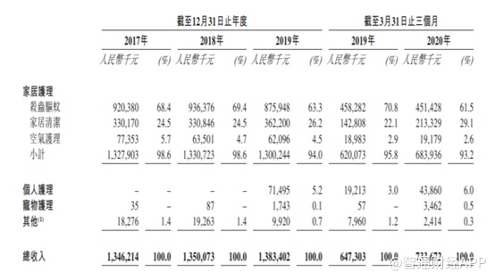 2017年至2019年,录得毛利润4.84亿元、5.02亿元和6亿元,年复合增长11.3%。毛利润增速明显高于收入增速,期内毛利率分别为35.9%、37.2%和43.4%,一方面是因为期内原材料价格稳定成本控制得当,另外主要是低毛利率的杀虫驱蚊产品收入占比从68.4%降至63.3%。公告显示2020年首季度,杀虫驱蚊产品毛利率为37.4%,而清洁产品和空气护理产品毛利率高达49.7%、56.7%。