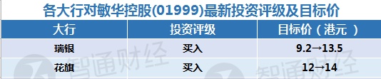 二、各大行对敏华控股(01999)最新投资评级及目标价
