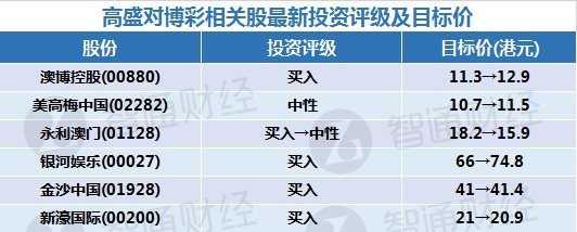 一、高盛对博彩相关股最新评级及目标价