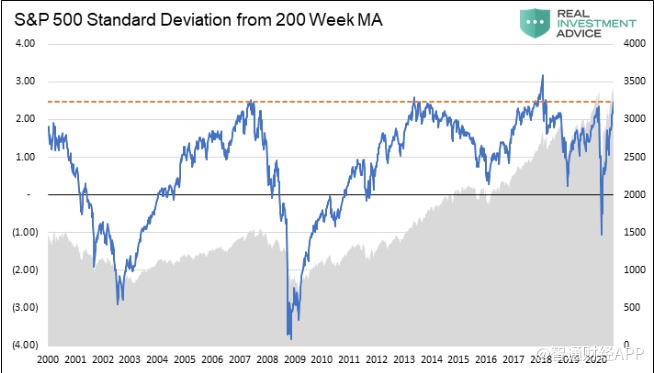 知名投资网站Real investment Advice Pro分析师Lance Roberts指出,美股市场目前处于超买、高估值和偏离均值的状态,另一方面,市场看涨情绪高涨,短期依然呈现看多上升趋势。投资者要保持警惕,因为短期逆转的风险已经上升。