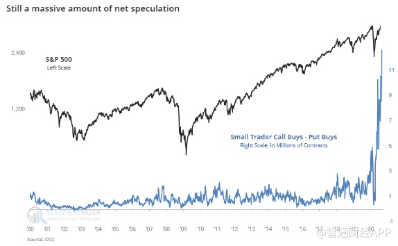 Roberts通过观察投机性买入期权的买家行为来验证这一观点。尽管股市回调,但这些买家仍增加了杠杆化押注。此外,这种投机行为在历史上是前所未有的。当这一切结束时,最终的结果是显而易见的。