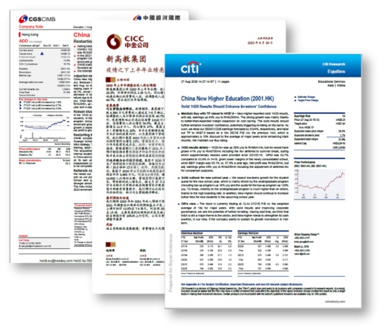 智通财经获悉,近期,中国新高教集团(02001)公布2020年上半年业绩,公司在“内生+外延”双轮驱动的发展策略之下,收入及利润指标均维持强劲增长,维持派息。花旗、中信里昂、中金、招商国际、银河国际、工银国际、凯基证券、第一上海和中泰国际等投行第一时间刊发研究报告及简评,纷纷上调目标价并重申“买入”、“增持”评级,看好新高教集团发展,未来增长潜力十足。目前新高教最高目标价8.07港元。