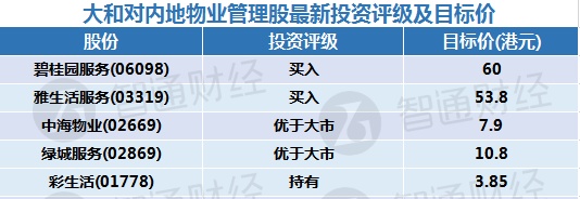 一、大和对内地物业管理股最新投资评级及目标价