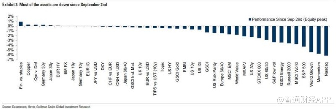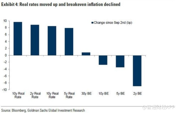 高盛指出,央行名义收益率是固定,盈亏平衡利率和实际利率更可能朝着相反的方向变化。高盛补充道,虽然盈亏平衡利率上升与较低的实际利率相结合通常非常利好风险资产和安全资产,但较低的盈亏平衡利率和较高的实际利率往往对市场非常不利,因为所有资产的价格都会下降。根据这一框架,自9月2日以来,多数资产价格下跌,多元资产投资者难以在市场调整中实现多元化。
