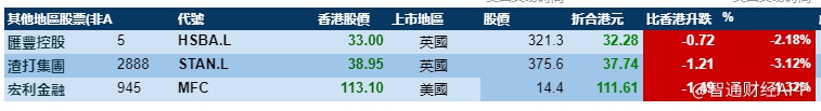 大型蓝筹集体下跌,汇丰控股收报32.35港元,较港收市跌0.65港元;腾讯控股收报501.76港元,较港收市跌6.74港元。