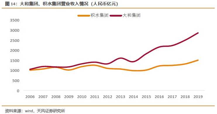 日本的装配式住宅产业经过约60年的发展,形成了以大和集团集团、积水集团为龙头,—条工务店、丰田房屋、TAMA房屋、松下房屋、旭化成房屋等数十家装配式住宅公司及几十万家相应的部品部件提供商这样—个庞大的产业链。大和集团、积水集团在2019年实现营业总额分别为2871亿元、1515亿元。