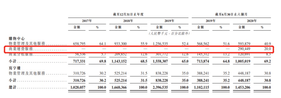 而随着今年1月份正式把“商业运营服务”纳入到商业运营及物业管理服务这一业务板块上,两者之间的收入差距就更小了。