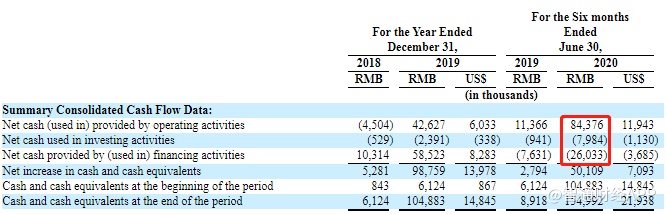 在截至2020年6月30日的6个月,公司经营活动现金流净流入8437.6万元;投资活动现金流净流出798.4万元;融资活动现金流净流出2603.3万元。