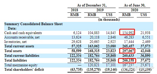 截至2020年6月30日,公司总资产为2.97亿元;总负债为2.66亿元;持有现金及现金等价物1.55亿元。