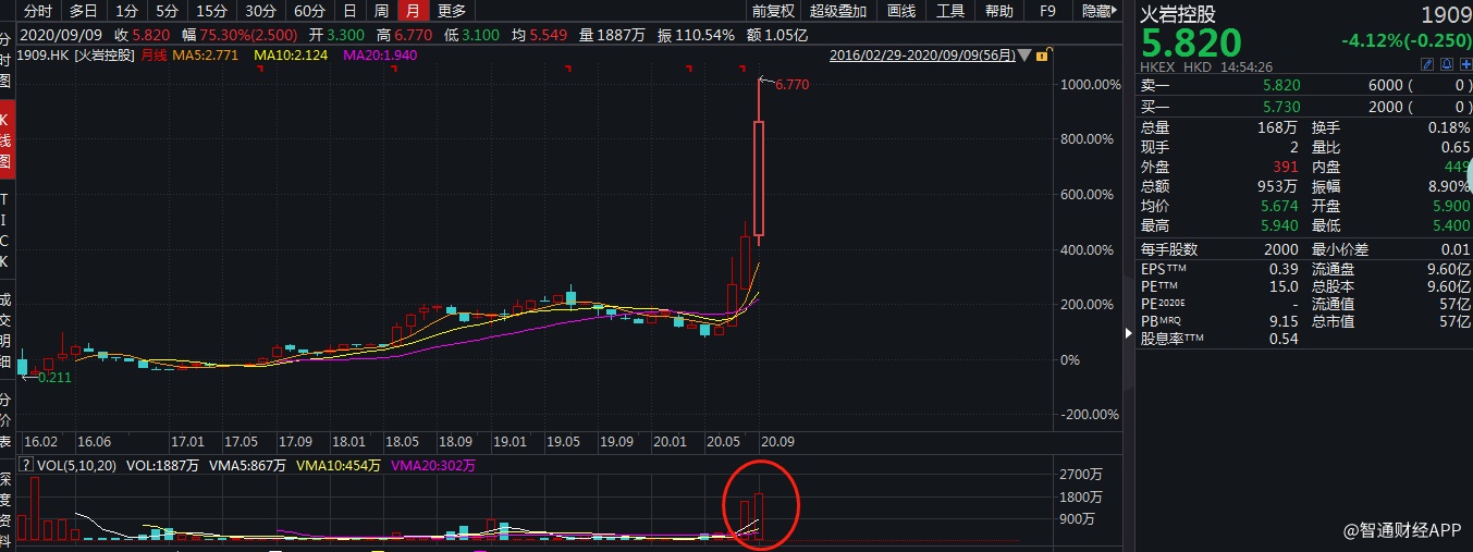 股价大涨的背后,是业绩的爆发式增长。智通财经APP发现,2020年上半年时,火岩控股收入同比增长176.7%至2.85亿人民币;同时,净利润为1.93亿人民币,同比大增216%。