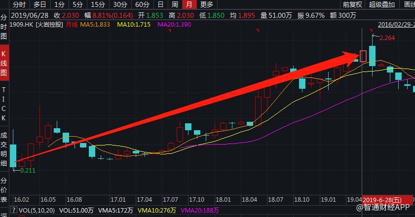 智通财经APP了解到,火岩控股于2016年2月18日在创业板上市,并于2019年6月27日成功转至主板。而在转板之前,火岩控股便实现了三年不到股价翻10倍的壮举,其股价从0.21港元涨至转板时的2港元每股。