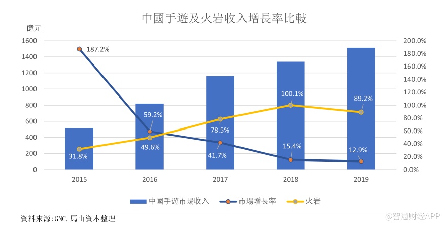 与股价翻倍相伴的,则是火岩控股持续高速增长的业绩。数据显示,从2016-2019年,火岩控股的收入自0.51亿港元增至3.45亿港元,年复合增速高达近90%;同时,其净利润从0.25亿港元增至2.37亿港元,年复合增速高达211%。强劲的业绩表现与中国手游市场逐年走低的行业增速形成鲜明对比。