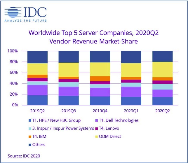 图片来源:IDC。由于现有的合资企业,IDC将惠与(HPE)与新H3C集团合并,浪潮与浪潮电力系统合并
