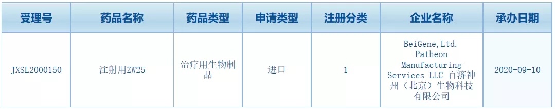 智通财经APP获悉, 中国国家药监局药品审评中心(CDE)今日最新公示,百济神州(06160)于2018年底从Zymeworks公司(ZYME.US)引进的靶向HER2的双特异性抗体zanidatamab(ZW25)在中国申报了一项临床申请,并于今日获得CDE受理。