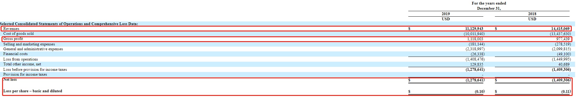 招股书显示,2019年公司营收为1113万美元,同比下降22.8%;毛利为112万美元,同比增长14.4%;净亏损为128万美元,2018年录得净亏损为141万美元;每股亏损为0.1美元,2018年每股亏损为0.11美元。