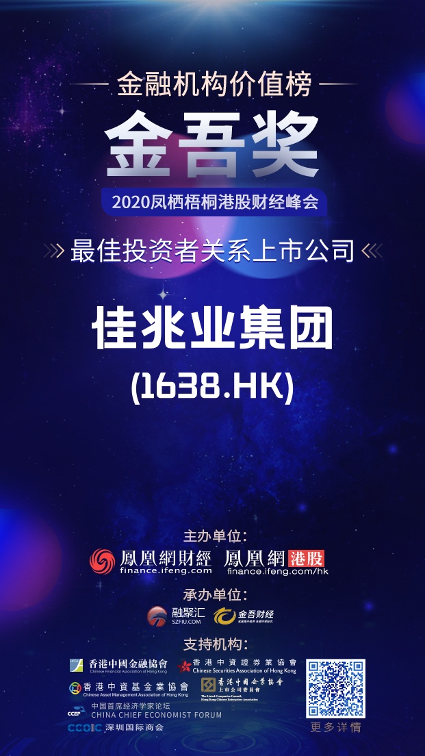 智通财经APP获悉,9月10日,由凤凰网财经、凤凰网港股联合主办,融聚汇、金吾财经承办的2020凤栖梧桐港股财经峰会成功举行。佳兆业集团(01638)通过不断提升自身管理水平,强化投资者关系工作的专业性及规范性,为投资者追求价值最大化,获评“最佳投资者关系上市公司”。