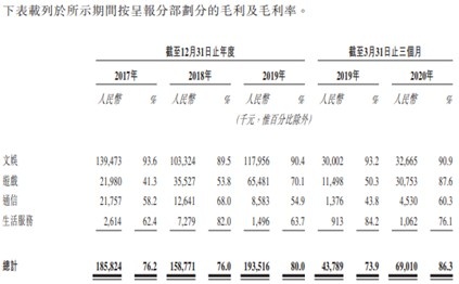 利润方面,毛利率大幅提升叠加规模效应,使得整体利润端增速再上一个台阶。智通财经APP了解到,2019年公司营收占比最重的文娱业务毛利率回升至90.4%高位,叠加增速最高的游戏业务毛利率还大幅提升16.3个百分点至70.1%,带动整体毛利率提升4个百分点至80%,毛利总额大幅增长21.9%至1.94亿元。2020年前三月,公司文娱分部毛利率依旧有90.9%,游戏部分由于专注高佣金率部分产品后,毛利率实现夸张的37.3个百分点同比增加至87.6%,再加上通信业务毛利率提升16.5个百分点至60.3%,公司整体毛利率进一步大幅提升12.4个百分点至86.3%,毛利总额达到6901万元,同比增速高达57.6%。