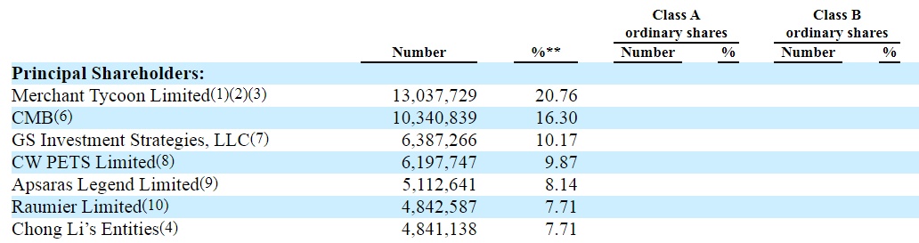就目前来看,CMB(招商银行)持股16.30%,为第二大股东;GS Investment Strategies, LLC(高盛)紧随其后持股10.17%,CW PETS Limited(成为资本)则持股9.87%。