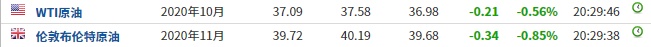 截至发稿,WTI原油跌0.56%,报37.09美元/桶。布伦特原油跌0.85%,报39.72美元/桶。