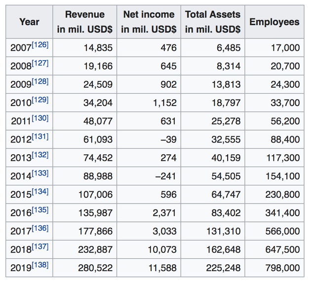 根据亚马逊向众议院反垄断委员会听证会提交的报告显示,截至2020年7月,亚马逊在全球已经拥有超过100万名员工。下图显示了该公司过去几年的劳动力增长情况。