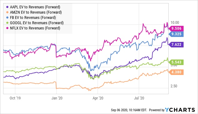 另一方面,就长期市销率而言,亚马逊在FAANG五只股票中提的估值最为可观。