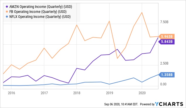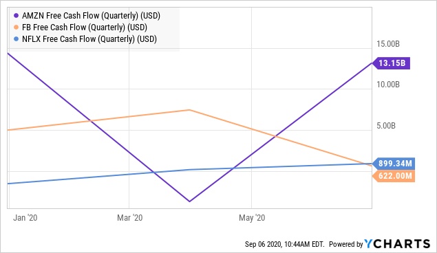 不过,由于上个季度亚马逊的自由现金流为130亿美元,由此该公司产生的自由现金流水平远超另外两家公司。