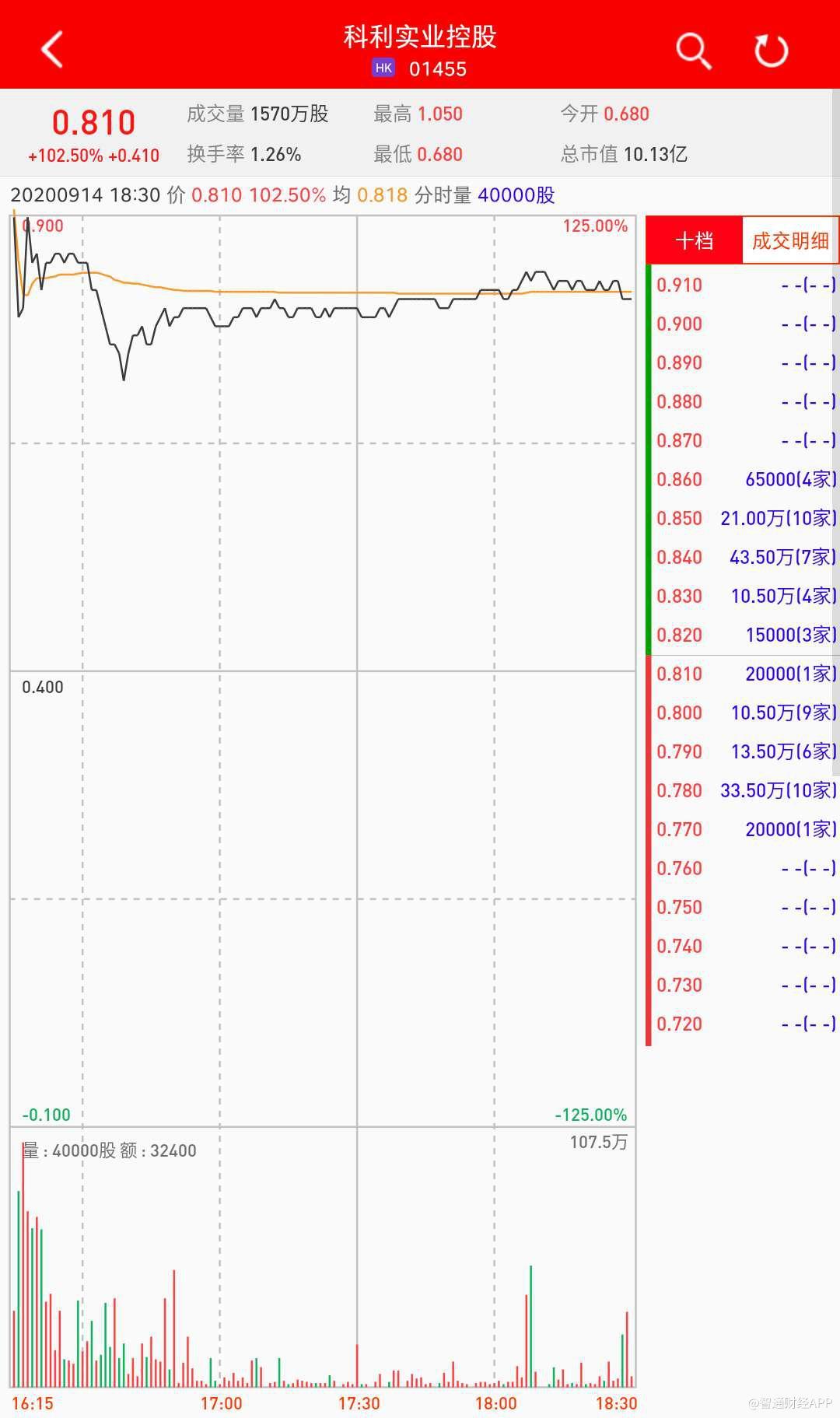 智通财经APP获悉,科利实业控股(01455)将于9月15日挂牌,截至暗盘收盘,利弗莫尔证券资料显示其暗盘报价0.81港元,较招股价0.4港元涨102.5%。每手5000股,不计手续费,每手赚2050港元。