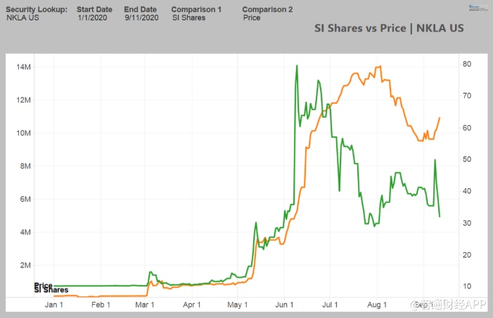 如果Nikola继续摆脱坏消息的影响,在利好消息的推动下攀升,该股可能很快就会出现轧空。目前,按市值计算,9月14日空头损失了3700万美元,但9月份的利润仍增加了5800万美元。空头一年的亏损高达2.29亿美元,9月的利润为他们提供了短期的缓冲。