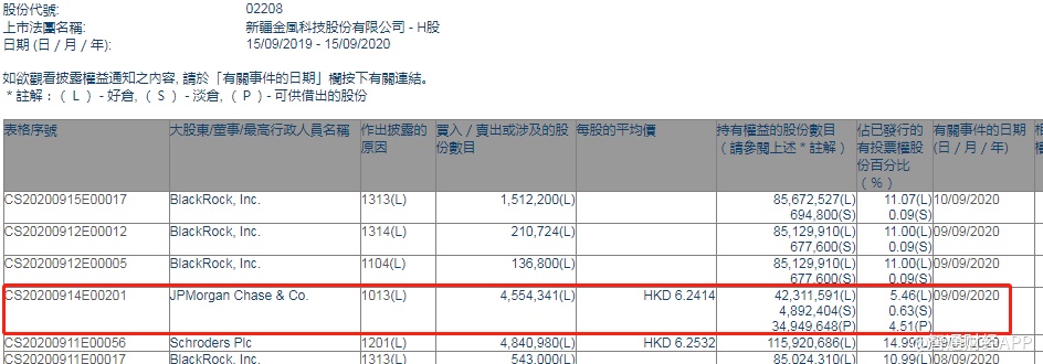智通财经APP获悉,香港联交所最新资料显示,9月9日,摩根大通增持金风科技(02208)455.43万股,每股作价6.2414港元,总金额约为2842.52万港元。增持后最新持股数目约为4231.16万股,最新持股比例为5.46%。