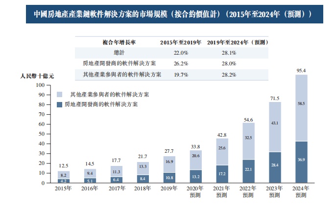 据智通财经APP了解,房产Saas解决方案市场从2015年的125亿元增至2019年的277亿元,预期2024年达到954亿元,逼近千亿发展规模,预计2019年至2024年的复合年增长率为28.1%。同时,该业务在国内的整体渗透率也不高,2019年仅为0.1%,而同期美国的这一数据为1.55%,即便是按照28.1%的年复合增长率来计算,渗透率也只有0.3%。