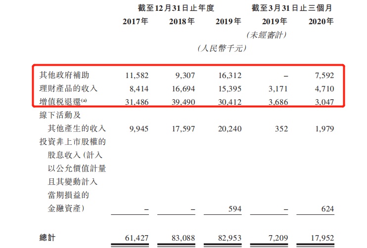一是,政府补助、理财收入和增值税退税是该公司利润的“隐形”支撑。