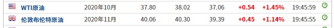 截至发稿,WTI原油涨1.45%,报37.80美元/桶。布伦特原油涨1.14%,报40.06美元/桶。