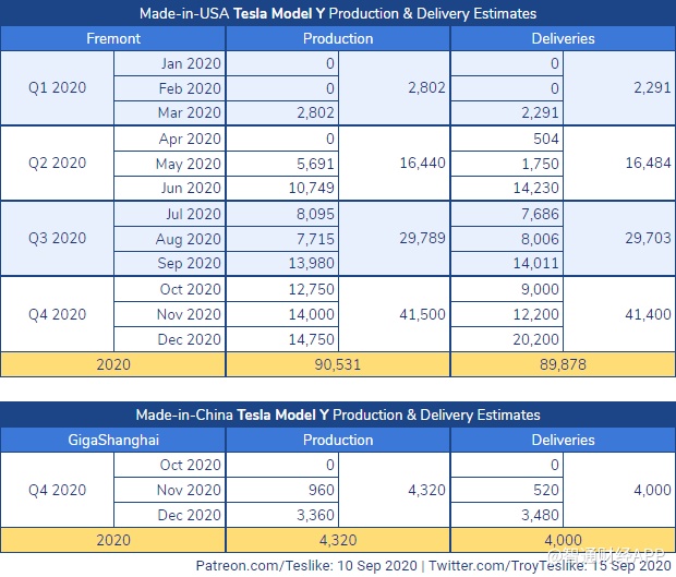 Troy Teslike估计特斯拉中国工厂将交付2068辆Model S/X和38651辆Model 3。对于Model 3的预估是基于其6月、7月以及8月合计的交付量。同时根据中国汽车技术研究中心的数据,Troy Teslike估计9月交付总量将与6月一致,为14976辆。