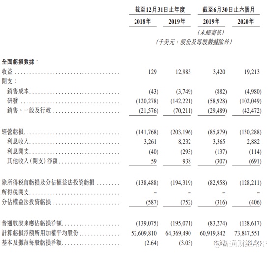 智通财经App了解到,2018年前,再鼎并没有销售收入,则乐商业化后才打破这一局面。招股书显示,2018年度、2019年度以及2020年6月30日前6个月,公司的收入分别为12.9万美元、1298.5万美元及1921.3万美元。